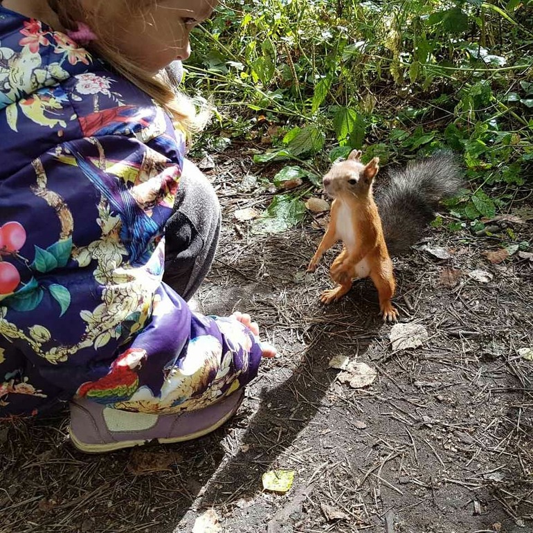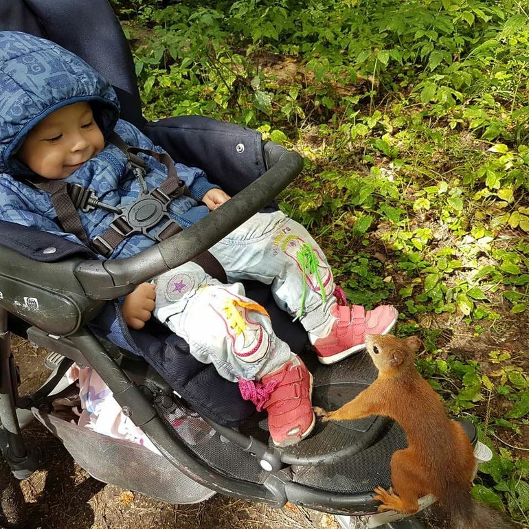 Белка притормозила коляску с Петей, чтоб взять мзду за въезд на её территорию. Круто, нам бы тоже выбраться. Рядом в лесу все белки пуганные, а тут такая роскошь... Придётся после работы мчать как-нибудь, пока погода позволяет. Чёт даже фотик не взяла в Парк, надо было пощёлкать детей. На следующую вылазку обязательно надо взять. Спасибо, что выгуляли нас!