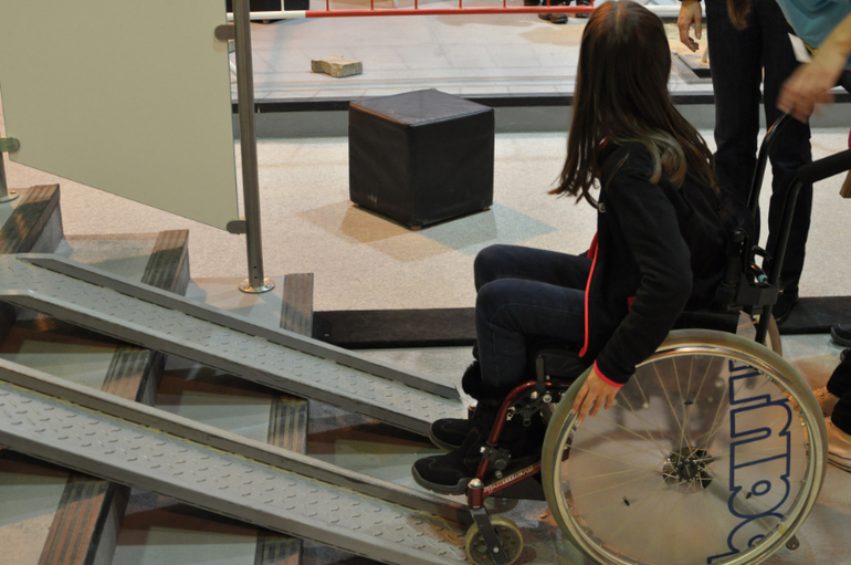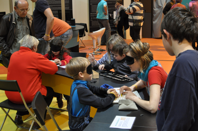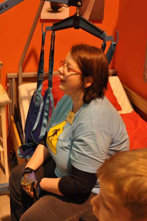 Тут первая часть выставки - экскурсия. Начали мы тем , что всем выдали повязки и попросили не подглядывать. Мы побывали в гостях у человека с ограниченными возможностями, послушали о том, как он справляется с ежедневными задачами: готовка, уборка, душ, работа, передвижение. Потом побывали в классе на лекции, потом была возможность задать вопросы.. а потом была свободная часть выставки, где мы и зависли почти на 3 часа.