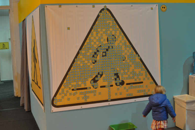 А здесь уже был флорбол, баскетбол и опять вернулись в интерактивную зону, потому что Николь просто хотела опять и опять собирать пазлы вслепую. Ушли мы самые последние с выставки.