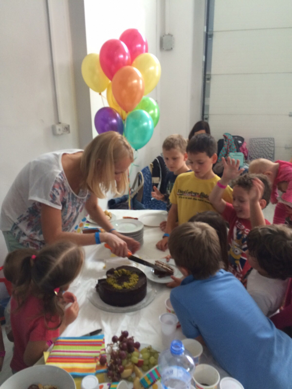 Каждый год я решаю, что сделаем только домашний праздник. Ой, я забыла добавить, что трое моих старших детей родились с разницей в неделю, поэтому праздник, как празднование с друзьями, мы, конечно, объединяем, пока это прокатывает. И тут, в очередной ночной агонии мне пришла светлая мысль, что можно сделать праздник в одном интересном месте, куда мы хотели пойти, но так и не дошли. Дело сделано - мы встали в выходные и поехали смотреть место. Потом опять зубы, учеба, трудная неделе - я пригласительные разослала за 3 дня до праздника. Ага, вот такая я быстрая.