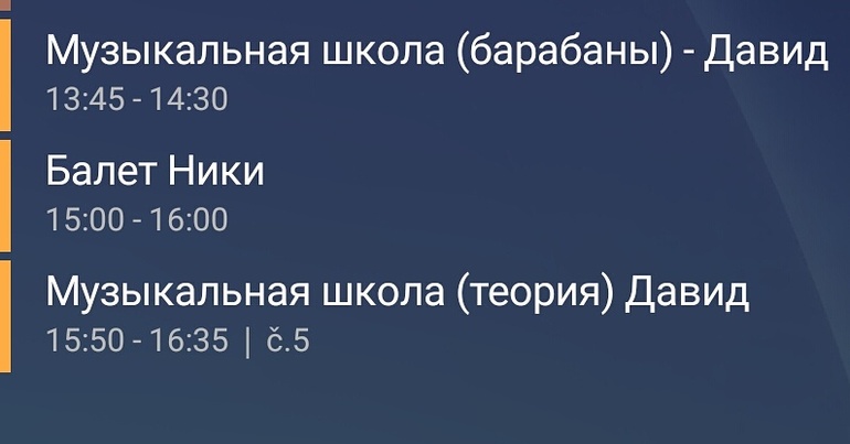Смотрю расписание понедельника. Если с утром все более менее понятно, то после обеда с планированием передвижений застопорилось - добавился балет у Ники. И теперь я пытаюсь понять как всех развезти: