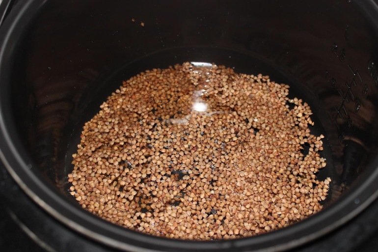 Сначала засыпаем гречку и 2,5 или 3 мультистакана, всё зависит от гречки, у меня в этот раз 3 стакана ушло, на кончике чайной ложки соли и грамм 50 сливочного масла, можно не добавлять, тк гречка пропитается вкусом окорочка и не будет сухой, выставляем режим крупы/рис на 40 минут- 1 час, зависит от мощности мультиварки.