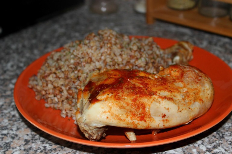 И идём на диван, ждать когда наша помощница всё приготовит, рассыпчатую гречку, пропитанную соком окорочка и сочное мясо.