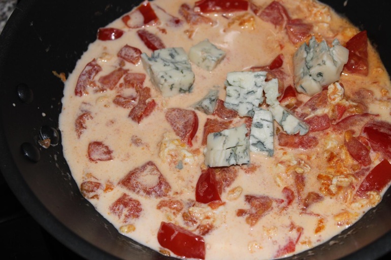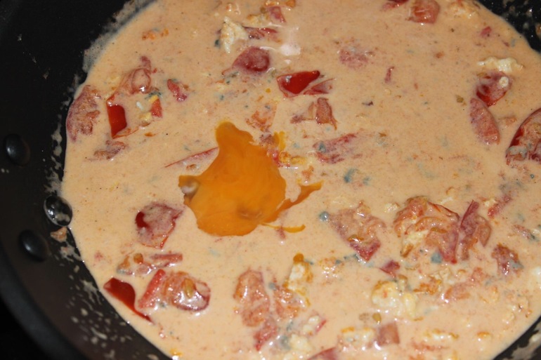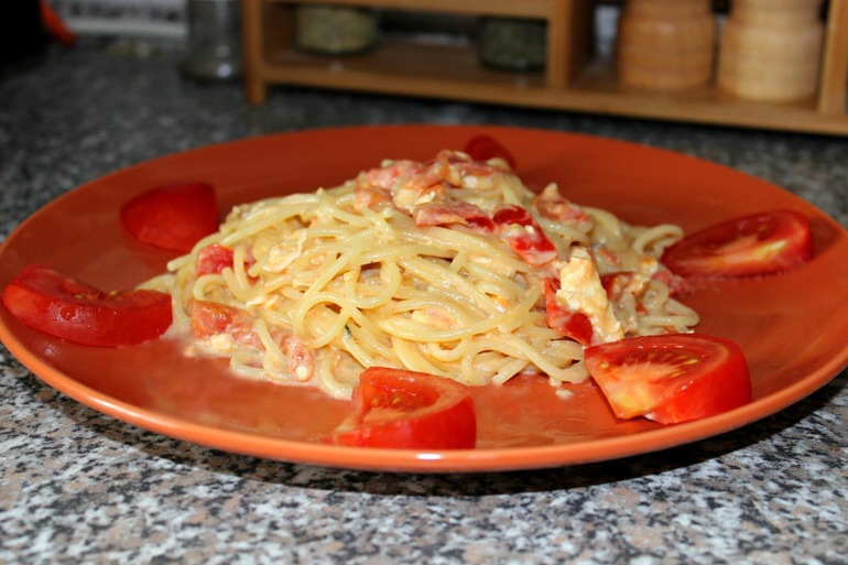 Паста с сыром и яйцом в сливочно-томатном соусе
