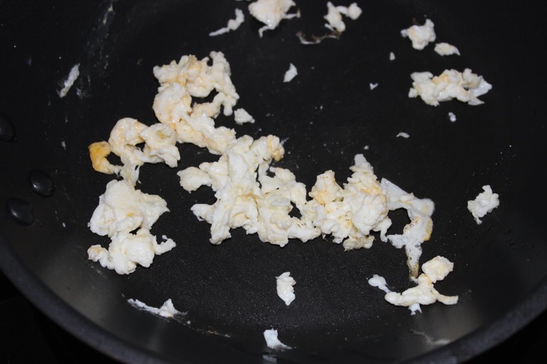 Ставим отваривать пасту, главно не переварить, а в это время делаем соус. Отделяем белок от желтка, разогреваем сковороду, добавляем немного оливкового масла и обжариваем белок ( если не любите белок можно его вообще убрать)