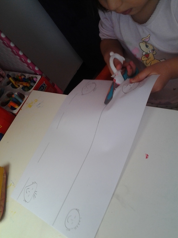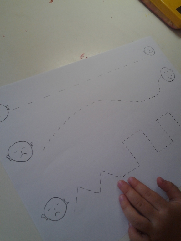 -Тренировали руку. Резали дорожки от грустного лица к веселому. И рисовали тропинки.