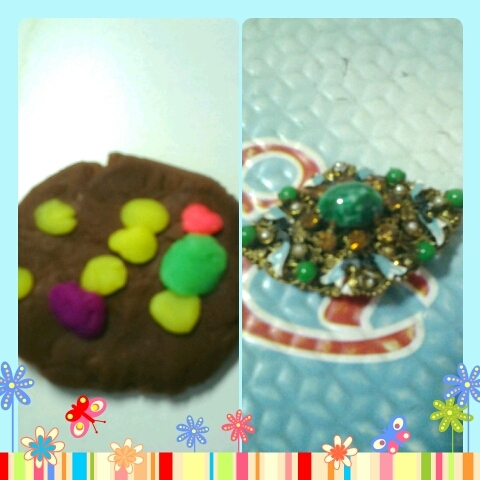 -сделали брошку из пластилина, по мотивам которой, стали делать уже пиццу )))
