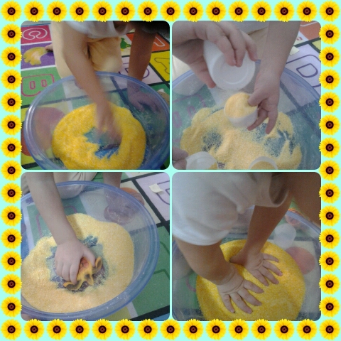 - Сделали озеро, только использовали не манку, а кукурузную крупу, молотую почти что в муку.
