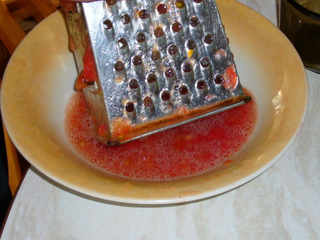 Помидорки в кипяток, а потом на терке :)