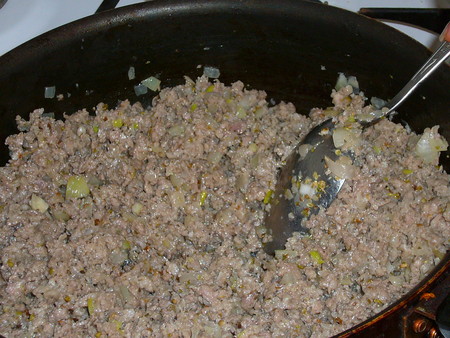 Итак, фарш с луком, со специями обжариваю.