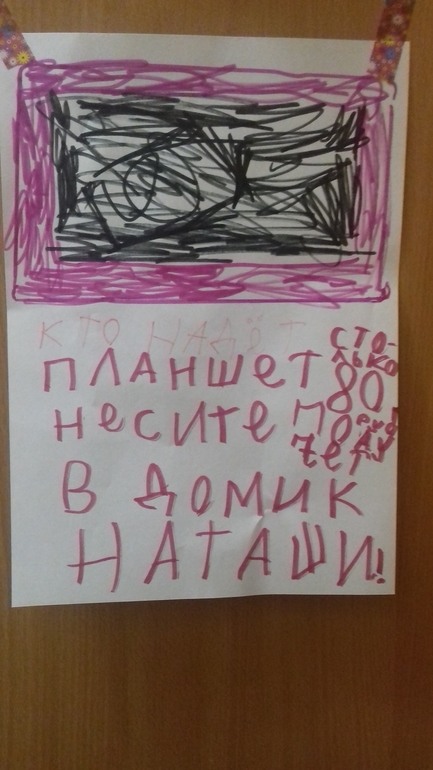 Про НаташуОтобрала у своей матрешки планшет и спрятала, а сегодня обнаружила в прихожей обьявление: