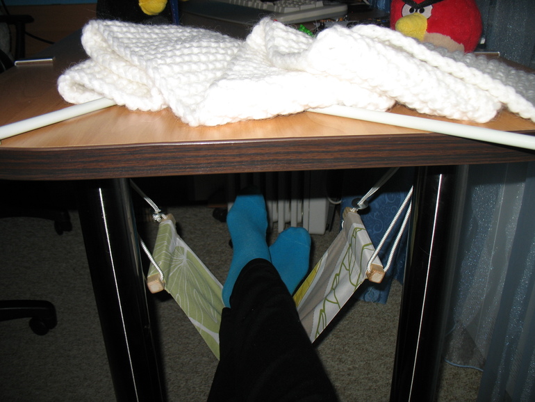 Кстати, гамачок решает еще одну проблему. Он избавляет от вредной привычки закидывать ногу на ногу. Чем грозит эта привычка, думаю, объяснять не надо.
