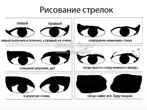 dвыходит, что можно))) у меня они все время разные получаются)))) но я научилась их рисовать по пластиковой карточке)) подставляю карту под одним и тем же углом к каждому глазу и просто как по линейке провожу линию. а потом уже отруки поправляю...