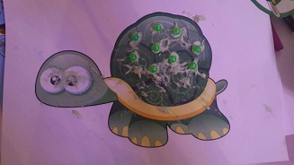 Второй нас встречала черепашка морская, но её панцирь не блестел в воде. Мы решили его украсить изумрудными бусинками, а чтобы их зафиксировать пришлось воспользоваться зелёным тестом!)