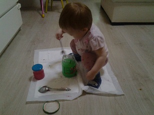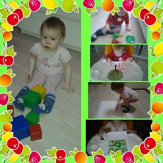 1)Лера потихоньку начинает учиться сортировать предметы по цветам!)