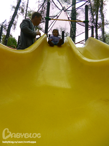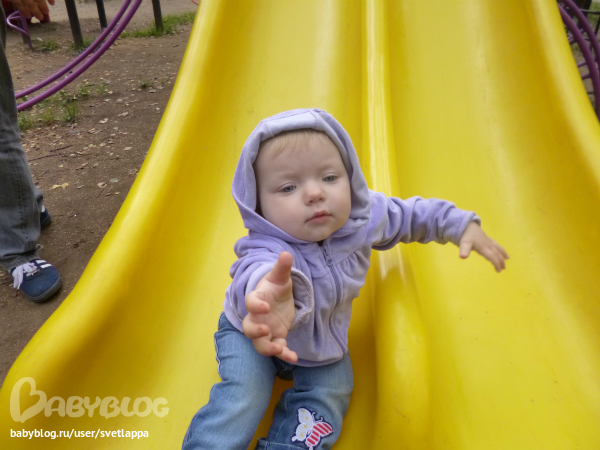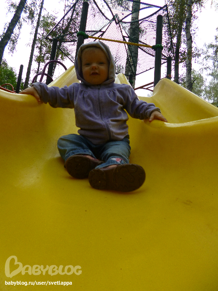 )) ну раньше я ее всегда держала за подмышки, потом за 2 руки, потом за одну) тк все наровила головой удариться(упасть на спину) потом лежа клала ее на горку) а теперь сама катается))))) неделю, а может и 2))))) все так на площадке удивляются, что такую мелкую одну на горку сажаю) и дают нам все полтора года)