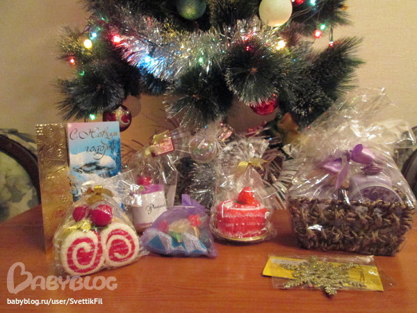 о уже елку поставили,а нам в пору пальму покупать,нет снегу и нет настроения. А у вас прям чую НГ,подарочки вообще душу пленнящие.