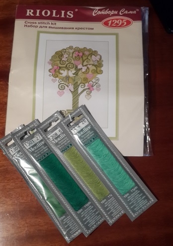 4. Для начинающего хомяка! Да, т.к. в моей норке пока ещё почти пусто))) Дерево счастья- давно на него смотрю, но ни как не приобрету. То кому то подарок надо вышить, то метрику, себе всё ни как. Я счастлива) Ниточки разных оттенков зеленого, теперь будет повод искать схемки для их применения.