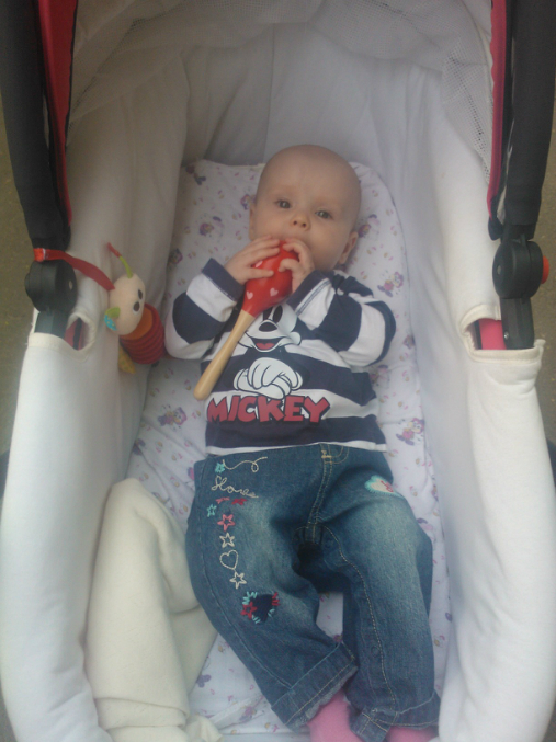 да, мы уже в прогулке)) в люльке она мне скандалы устраивала, сейчас вроде полегче стало, но все равно на руки пытается выманиться из коляски)))
