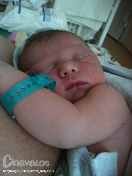 время 9-30. Приезжает свекровь, до нее дошла инфа что я рожаю, а ей не сказали))) она приехала через 10 минут. я как раз лежала в эйфории от эпидуралки)) но потуги чувствуются, правда не так сильно! через 40 минут действие лекарства заканчивается и я начинаю орать что есть мочи! мама бегает по коридору в поисках врача. приходит акушерка, одним взмахом руки раскладывает подо мной кровать, пришла врач- и я рожаю! через 3-4 потуги родился мой Димочка ровно в 10-30 , представляете, как и мой муж!! первого крика я не помню(( была не в адеквате! свекровь стоит рядом плачет от счастья)) положили мое счастье мне на грудь,дали попробовать молозиво, укрыли нас 2 одеялами и мы так пролежали 2 часа. пустили к нам мужа, он пофоткал нас немного)) что мне понравилось, так это то, что ребенка не забирали в роддоме ни на секунду от матери! как только он родился, он был только мой!14.07.12 г. 3800 и 55 см.