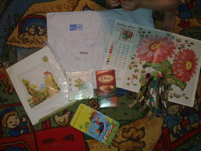 Получила сегодня на почте, ходила с дочей.... Вскрыли как вышли с почты на детской площадке.... не удержалась) Спасибо больше Евгения за подарочки ..шоколадку и карандашики для дочи) здоровкие наборчики... здоровские наборчики...вышью выложу обязательно!