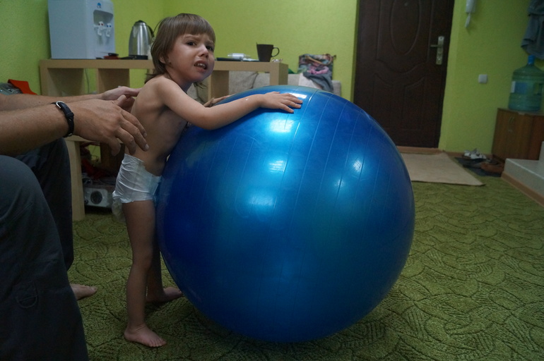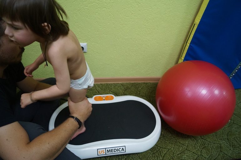 Закончилась наша 10 дневная августовская реабилитация. Врач-реабилитолог сказал делать дома упражнения с упором на мышцы - разгибатели спины, ягодичные мышцы и стопы. На разгибатели делать упражнение не трудно, а вот как качать ягодичные, даже инструктор сказал что самостоятельно мы не сможем, Соня не пользуется этими мышцами совсем и заменяет их икроножными и мышцами поясницы за счет этого они у нас вообще не развиты. На стопы - ходим босиком по песочку камешкам и на ступеньке с поочередным переносом всего веса на стопы. Посоветовал купить виброплатформу для ежедневных занятий дома, но возможности ее купить пока нет.ее цена на сайте http://www.us-medica.ru/vibroplate.php 36 000 рублей. Еще сказал, что из за того что Соня плачет и сопротивляется на занятиях, нагрузка не усваивается полностью и ее очень трудно научить пользоваться и использовать те или иные мышцы.....поэтому для "подкачки" ягодичных мышц использовал миостимуляторы, объяснил что если он будет качать ее руками через боль и ее истерики, максимум из 100 качаний той или иной мышцы до цели дойдет около 20.
