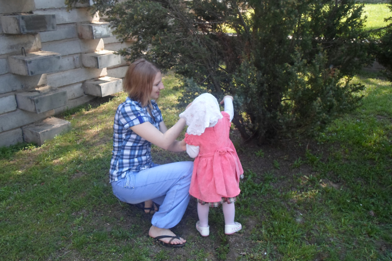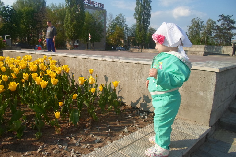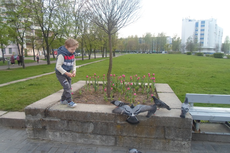 У нас сложилась маленькая традиция-на прогулке мы кормим голубей))