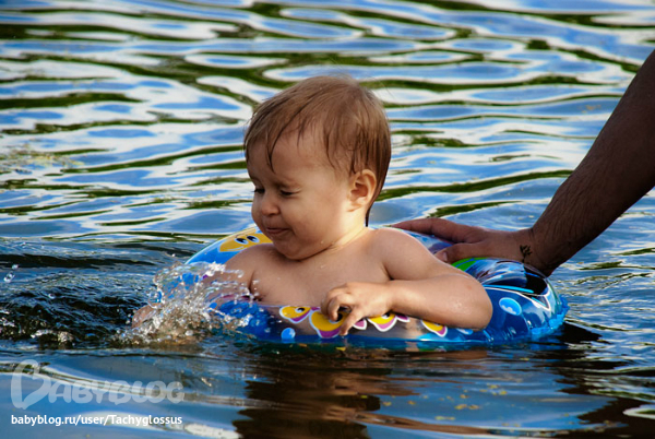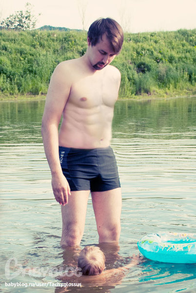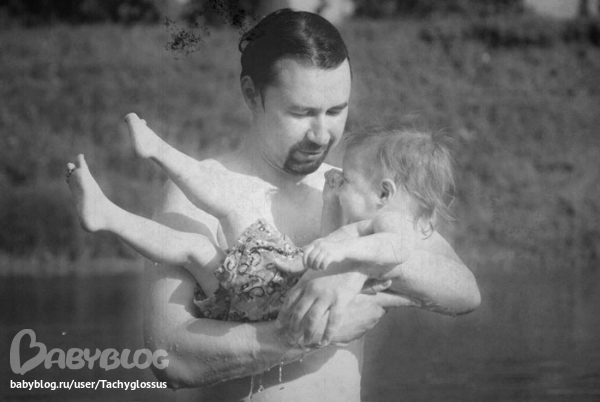 На самом деле, кадр длился доли секунды, на следующих кадрах заботливые папины руки подхватили дочу не дав ей даже опустить подбородок в воду... Это если кто разнервничался по поводу папы-садиста.