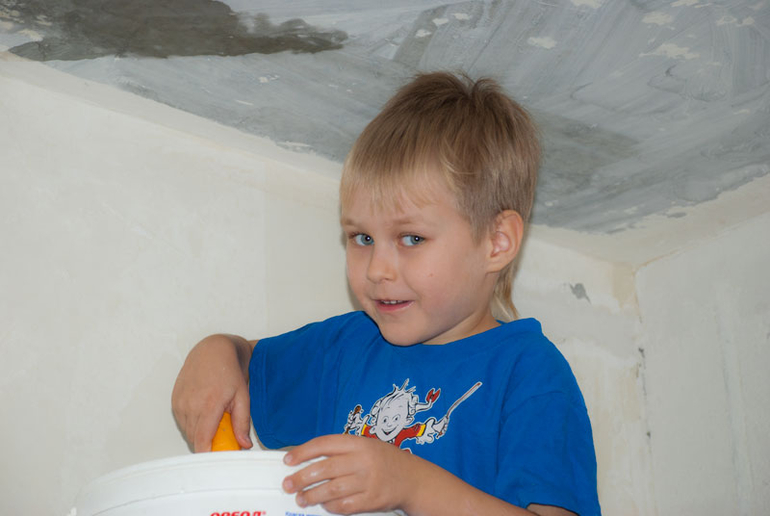ВоспитательноеКартина маслом. Мама за компом, читает сказку и рисует картинки, включает ребенку музыку и грозится спустить его с лестницы и отправить играть в лего, если он не будет особо усердно стараться. А ребенок тщательно трет валиком потолок, шкребет шпателем и просит, ну хоть еще чуть-чуть поработать и не отправлять его играть в игрухи. Это к вопросу о том, что делают дети в моем доме и в частности, что должен уметь мальчик.