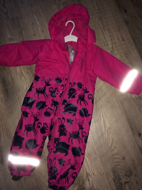 Для зимы (в феврале исполялся годик!) купили Reima, на рост 74. Рейма, как известно, это всегда +6 к ростовке, то есть наш был по факту 80. Гм... Это потому, что нам казалось, что дочка вот сейчас каааааак вымахает. В ноябре.