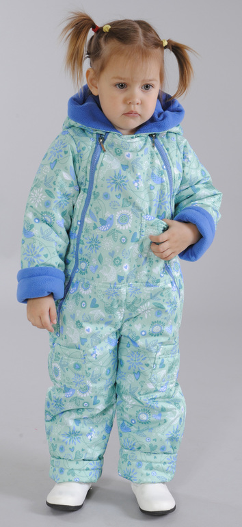 Тут смысл был в том, что малыш все равно в коляске, причем в люльке, так что одевать можно полегче, плащевка не актуальна, модель - чем проще, тем лучше. Капюшон, молния, "ножки" (чтоб не устраивать во это все с пинетками) - и ок.