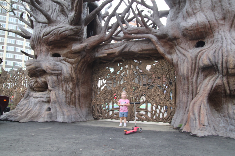 есть фонтан, скульптуры, интерактивная черепаха, горки-лазелки для маленьких, сухой бассейн с шариками...все не сфотографировала.