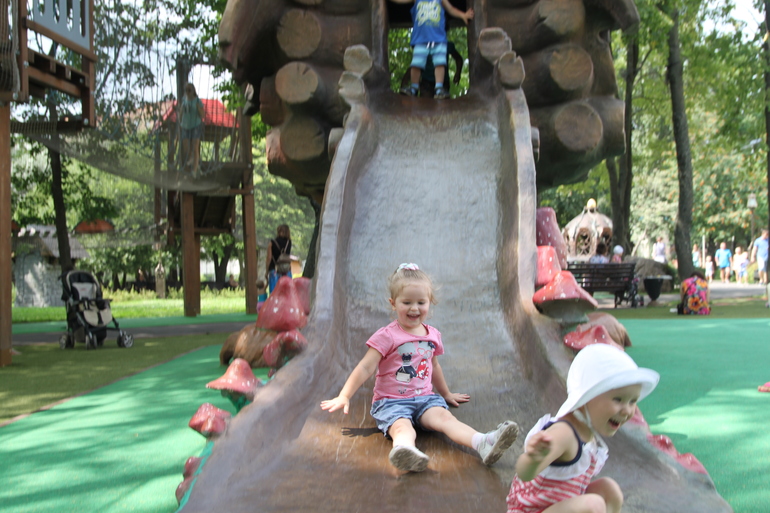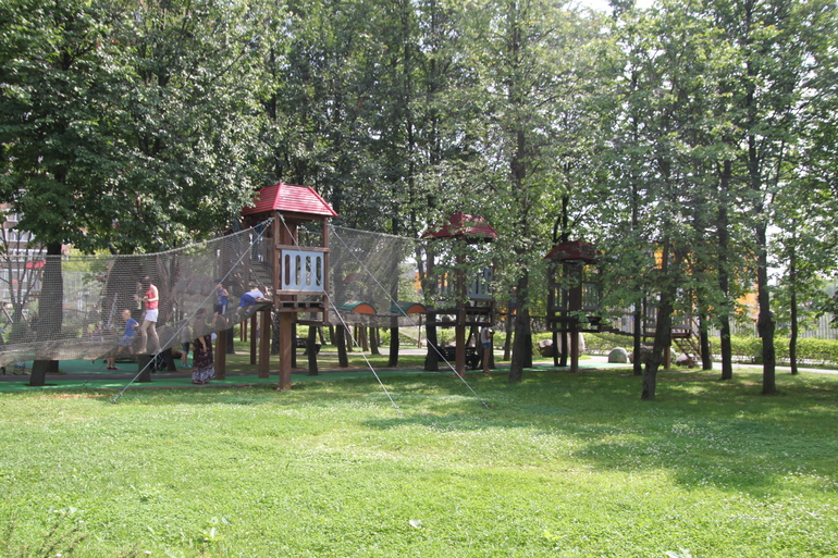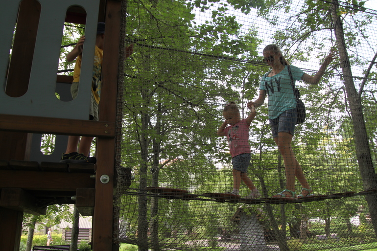 На территории горочки, веревочный парк! Даже Анюта ходила с удовольствием!