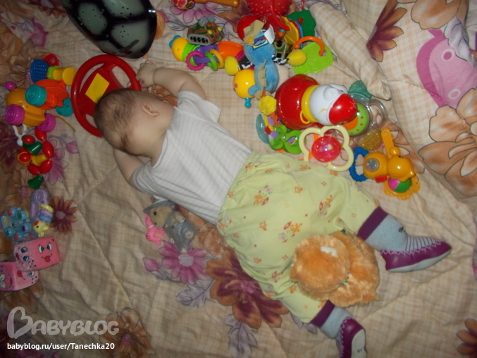 Очень любим слушать музыку и музыкальные игрушки. С 6 мес. едим уже все. А ещё часто дерется и щипается.