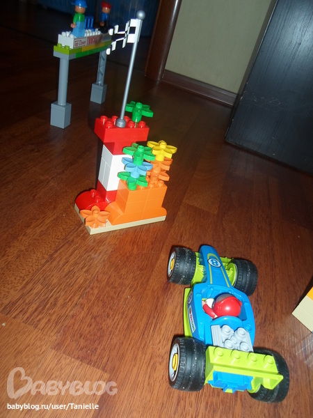 Мы построили небольшую трассу с пит-лейном, стартом и финишем, трибунами и подиумом.