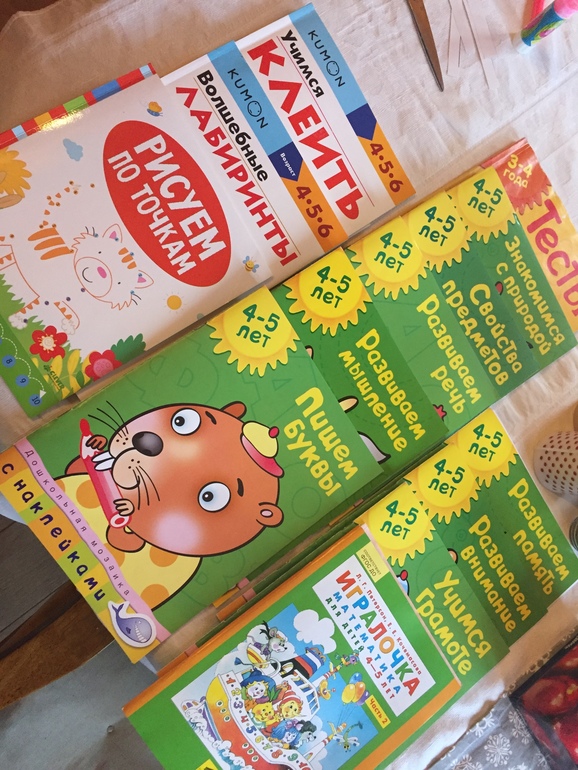 Еще в качестве пособий идут все книжки с заданиями из фикс-прайса.