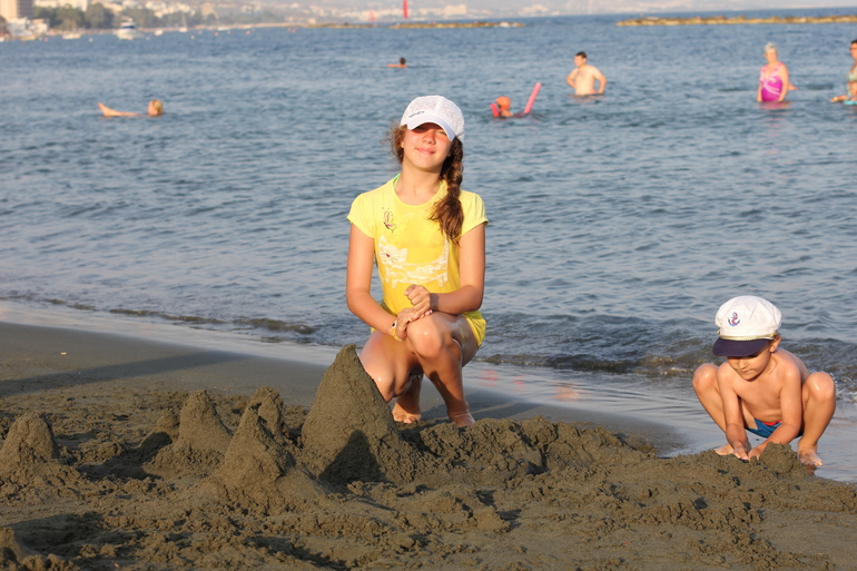 Почти все время мы проводили на пляже. Сначала дети лепили небольшие куличики и башенки ,а потом