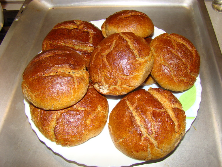 Испекла в виде булочек из ржаной муки. Честно говоря, очень напоминает наш фирменный харьковский украинский черный хлеб, который все так любят! не знаю почему, но ни где его больше делать не умеют;) В следующий раз испеку именно в виде черного круглого хлеба.