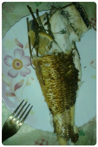 1 Рыбка у меня "Атлантида" 300гр, разрезаем внутри по кости, чтоб получилась как кармашек, солим перчим в кармашек складываем зелень какая вам нравится у меня петрушка, кусочки лимона, с верху немного посолить и натереть специями у меня Для рыбы готовая (кориандр, куркум, лук, паприка, укроп,морковь,шамбала, майоран, сельдерей).