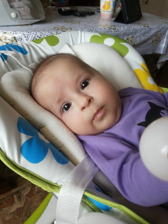 Теперь о хорошем.Лерочка растет и развивается радуя меня каждый день.Она уже научилась переворачиваться на животик и активно пытается сесть,но всему свое время.В общем моя девочка растет как и положено,и умеет все что ей нужно уметь.