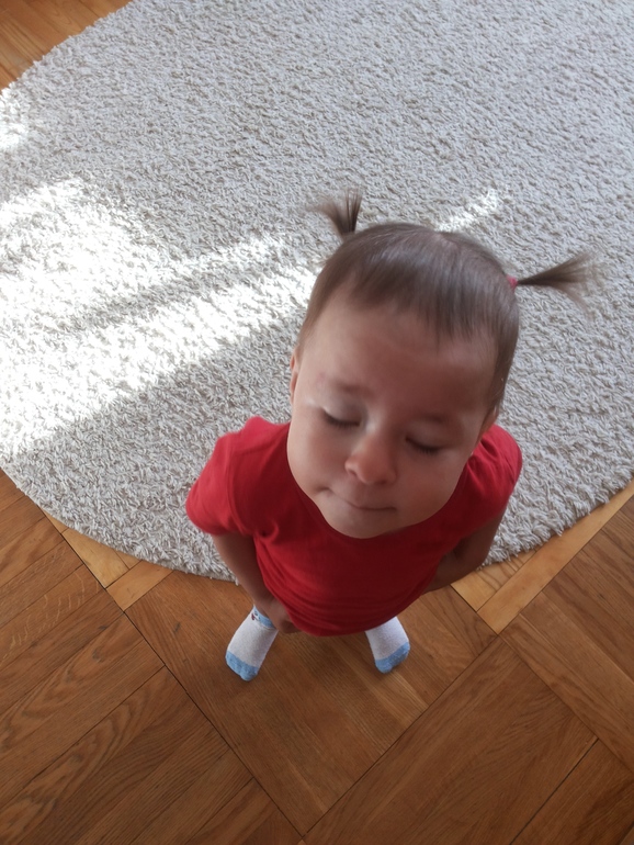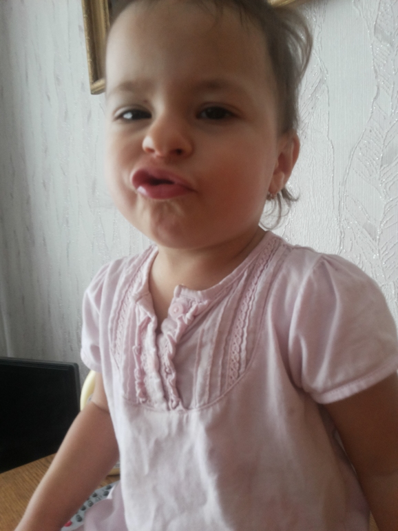 Коротко о Лерушке.Зубов пока больше не стало,как было 12 так и есть.Стала больше кушать,почти всегда что-то хомячит,что очень меня радует.Научилась говорить кака,при этом берет памперсы или даже чистые вещи и идет выбрасывать в мусорное ведро,теперь только смотри что она посчитала какой