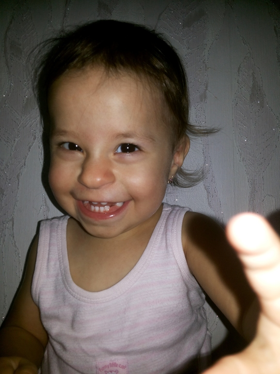 Пролетел еще один месяц,доча взрослеет на глазах.Совсем уже большая девочка.параметры точных не знаю,т.к. в поликлинику мы не ходим вот уже 4 месяца,примерный рост 83 см,вес 10 700.Зубов пока все 12,но на подходите уже клыки,ждем со дня на день.