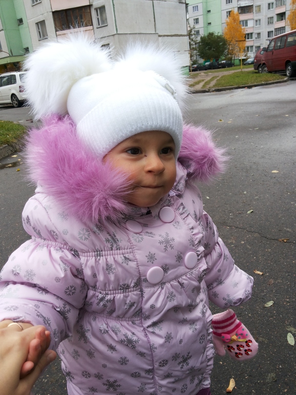Погодка пока у нас ничего,ходим гулять каждый день.Лерочке очень нравится ходить ножками,но когда устает,то не против и в коляске погулять.
