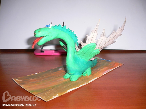 Сегодня вечером всей семьёй лепили Змея Горыныча.Задание по грамоте,правда, по желанию.Мы пожелали.У  нас получился голубоглазый одноголовый Горыныч.Симпатяга!