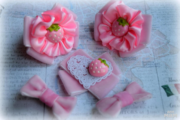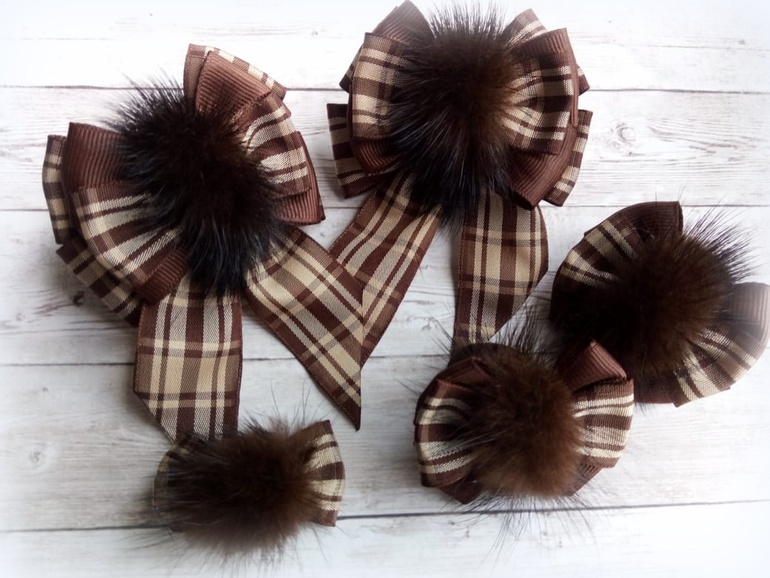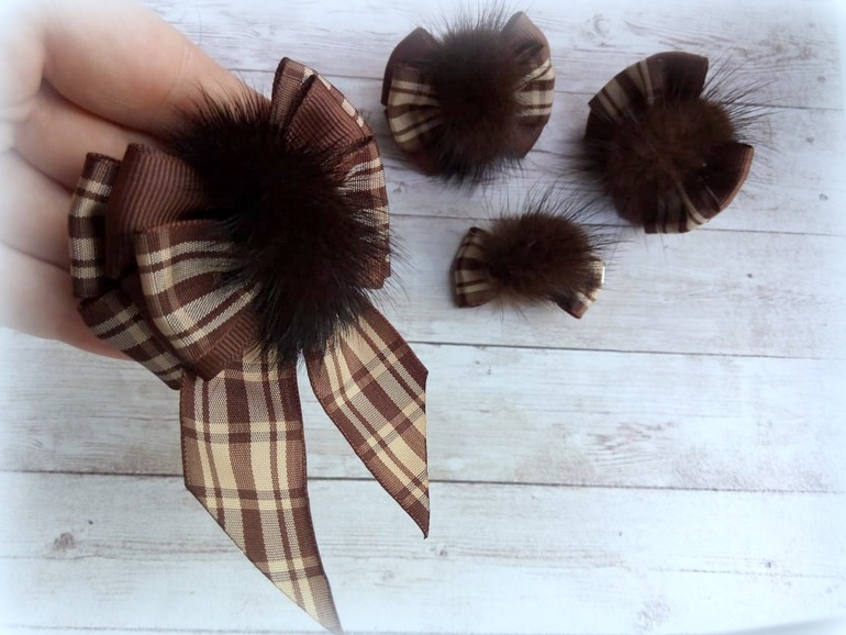8) Брошь, два больших бантика и два маленьких. Маленькие без основы. По желанию сделаю на резиночке или заколочке.