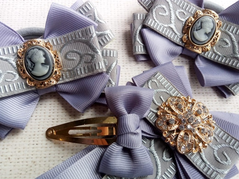 13) Набор для самых утонченных маленьких леди) Размер бантиков всего 5-6 см. Эксклюзивная фурнитура из Японии. В наборе два бантика , две заколочки и брошка (могу сделать другую основу - заколочку или резиночку)