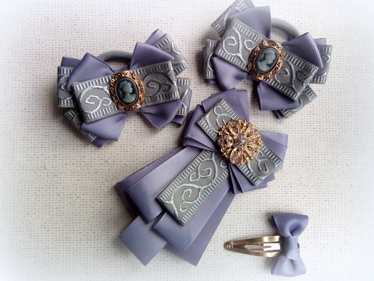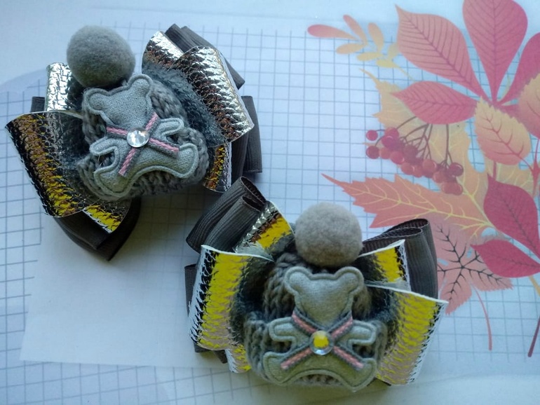 5) Набор под серую форму с мааааалюююсенькими заколочками для усмирения непослушной челочки) Бантики резиночки около 6 см, заколочки - 2,5см.