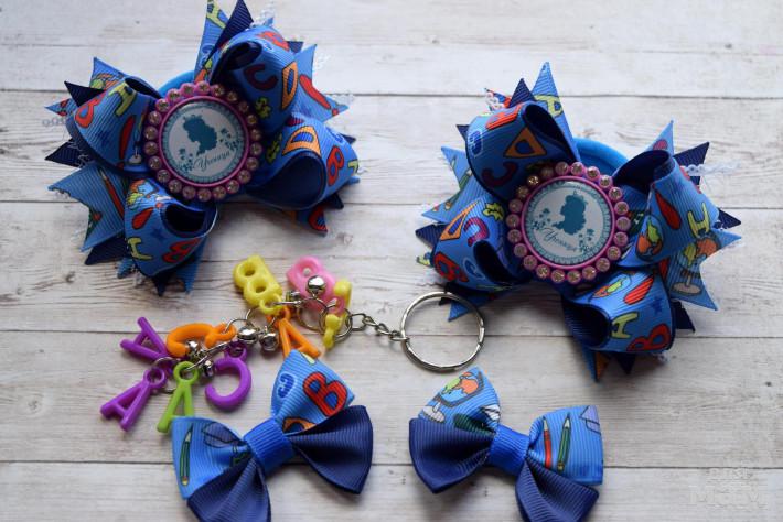 15) Подарочные наборы бантиков с брелочками на ранец (телефон или ключи)