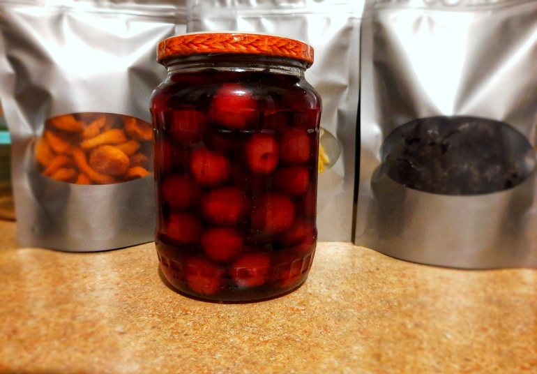 И так, разыгрываю набор продуктов: 1) банока 08л. Пряная вишня. Готовый продукт к употреблению. Вишня острая но в меру!