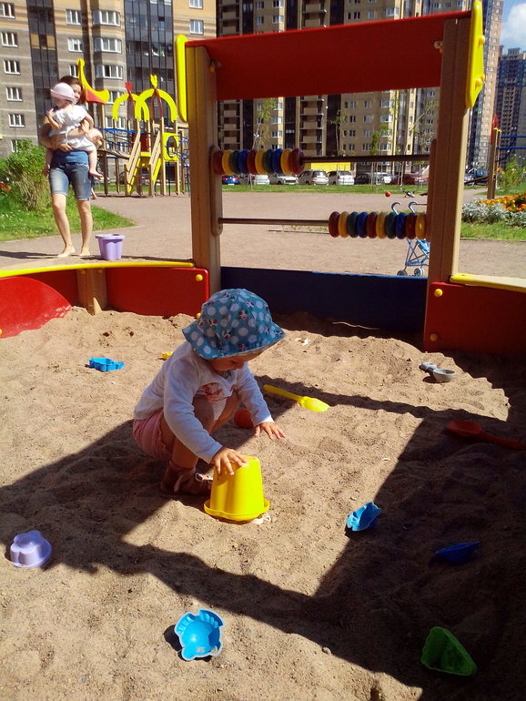 В последнее время стали мы гулять только на площадках, больше ей ничего не интересно и не надо. Кончилась спокойная жизнь(((( т.к я ооочень не люблю обсуждения кто что может и кто что делает((((( Ну ничего, надо просто пережить этот момент)))))Обычно я стою и киваю , типа "Да да да" все умеем и все знаем)))))))))Успокаивает одно, площадок у нас оочень много, штук 10 сделали и ходи где хошь )))